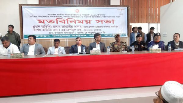 টেকেরহাট (মাদারীপুর) সংবাদদাতা। মাদারীপুরের রাজৈর উপজেলায় আইনশৃংখলা কমিটির মাসিক সভা অনুষ্ঠিত হয়েছে। বৃহস্পতিবার উপজেলা নির্বাহী অফিসারে হলরুমে উপজেলা নির্বাহী অফিসার মোঃ মাহফুজুল হক এর সভাপতিত্বে বিভিন্ন দিক তুলে ধরে বক্তব্য রাখেন উপজেলা পরিষদ চেয়ারম্যান মোঃ মহাসীন মিয়া, ভাইস চেয়ারম্যান সাহাবুদ্দিন সাহা, সংসদ সদস্যের স্থানীয় প্রতিনিধি আফম ফুয়াদ, দুর্নীতি প্রতিরোধ কমিটির সভাপতি খোন্দকার আবদুল মতিন( সাংবাদিক-দৈনিক