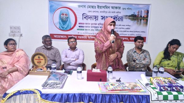 মাদারীপুর প্রতিনিধি।  সমন্বিত সরকারি অফিস ভবন অফিসার্স এসোশিয়েশন এর কার্যালয়, সমন্বিত অফিস ভবনের ক্যাফেটেরিয়ার উদ্ধোধন ও  জেলা প্রশাসক ও বিজ্ঞ জেলা ম্যাজিস্ট্রেট মোছা. ইয়াসমিন আক্তার (যুগ্ম-সচিব)  এঁর বদলী জনিত বিদায় সংবর্ধনা অনুষ্ঠান অনুষ্ঠিত হয়। সমন্বিত সরকারি অফিস ভবন অফিসার্স এসোশিয়েশন এর উদ্যোগে এ আয়োজনে প্রধান অতিথি হিসেবে উপস্থিত ছিলেন  স্থানীয় সরকার উপপরিচালক মুহাম্মদ হাবিবুল আলম, বিস্তারিত